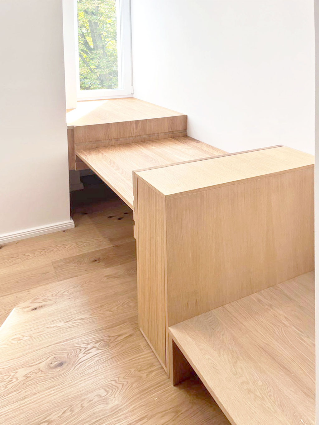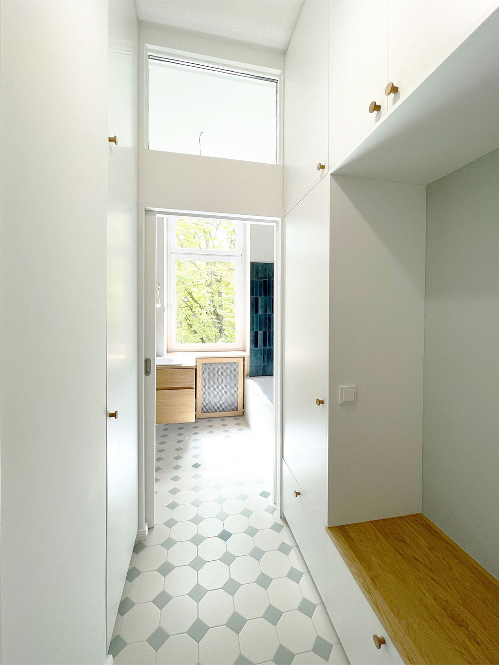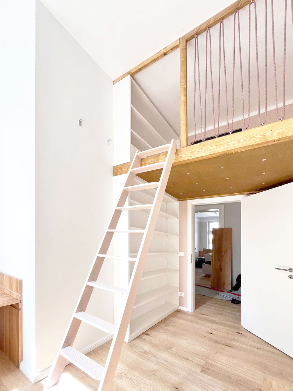 Maßgefertigte Einbauregale und integrierte Garderobe für optimale Raumnutzung