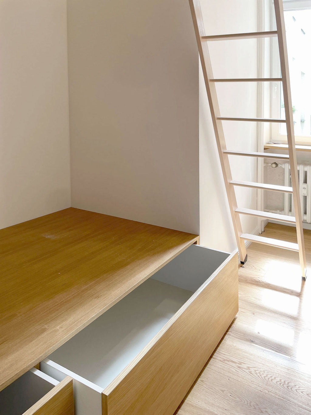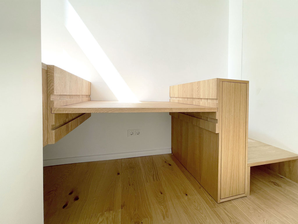 Neuaufteilung des Grundrisses mit Schlafzimmer und zwei Kinderzimmern inkl. Hochbetten